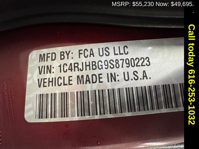 Blackout Model (Black Painted Roof, Delete Limited Badge, Dual-Pane Panoramic Sunroof, Wheels: 20 x 8.5 Black Painted Aluminum, and Gloss Black Exterior Accents), Quick Order Package 23E, Trailer Tow Package (220 Amp Alternator, Heavy-Duty Engine Cooling, Rear Load Levelling Suspension, 7 and 4-Pin Wiring Harness, Automatic Headlamp Levelling System, Class IV Receiver Hitch, and Trailer Hitch Zoom), 4WD, Capri Leatherette Seats, Front Bucket Seats, Front dual zone A/C, Heated door mirrors, Heated front seats, Heated rear seats, Heated steering wheel, Navigation System, Power door mirrors, Power Liftgate, Radio: Uconnect 5 Nav with 10.1 Display, Speed-Sensitive Wipers, 4-Wheel Disc Brakes, 6 Speakers, ABS brakes, Active Noise Control System, Air Conditioning, Alloy wheels, AM/FM radio: SiriusXM with 360L, Anti-whiplash front head restraints, Audio memory, Auto High-beam Headlights, Automatic temperature control, Brake assist, Bumpers: body-color, Compass, Delay-off headlights, Driver door bin, Driver vanity mirror, Dual front impact airbags, Dual front side impact airbags, Electronic Stability Control, Emergency communication system, Four wheel independent suspension, Front anti-roll bar, Front Center Armrest w/Storage, Front fog lights, Front reading lights, Fully automatic headlights, Garage door transmitter, Illuminated entry, Knee airbag, Low tire pressure warning, Memory seat, Model Year Tracking, Normal Duty Suspension, Occupant sensing airbag, Outside temperature display, Overhead airbag, Overhead console, Panic alarm, ParkView Rear Back-Up Camera, Passenger door bin, Passenger vanity mirror, Power driver seat, Power passenger seat, Power steering, Power windows, Radio data system, Rear anti-roll bar, Rear reading lights, Rear window defroster, Rear window wiper, Remote keyless entry, Security system, Speed control, Split folding rear seat, Spoiler, Steering wheel mounted audio controls, Tachometer, Telescoping steering wheel, Tilt steering wheel, Traction control, Trip computer, Turn signal indicator mirrors, Variably intermittent wipers, Voltmeter, and Wheels: 18 x 8 Polished/Painted Aluminum. Price includes: $2250 - 2025 National Retail Bonus Cash . Exp. 02/02/2026 $750 - 2025 Great Lakes BC Retail Bonus Cash. Exp. 02/02/2026