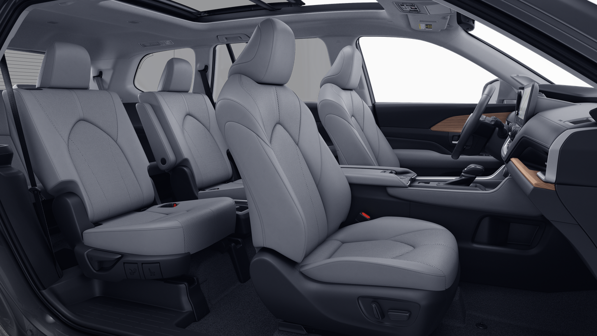 - 7-passenger seating with second-row fold-down captain's chairs and fold-down inboard armrests, adjustable headrests and two cup holders mounted on the floor; and 60/40 split, fold-down third-row seats with sliding headrests and recline function