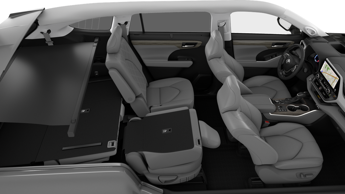 AWD, ABS brakes, Active Cruise Control, Alloy wheels, Electronic Stability Control, Front dual zone A/C, Heated door mirrors, Heated front seats, Heated rear seats, Illuminated entry, Leather Seat Trim, Low tire pressure warning, Navigation System, Power Liftgate, Power moonroof, Remote keyless entry, Traction control. Wind Chill Pearl 2026 Toyota Highlander Platinum AWD 8-Speed Automatic 2.4L 4-Cylinder
