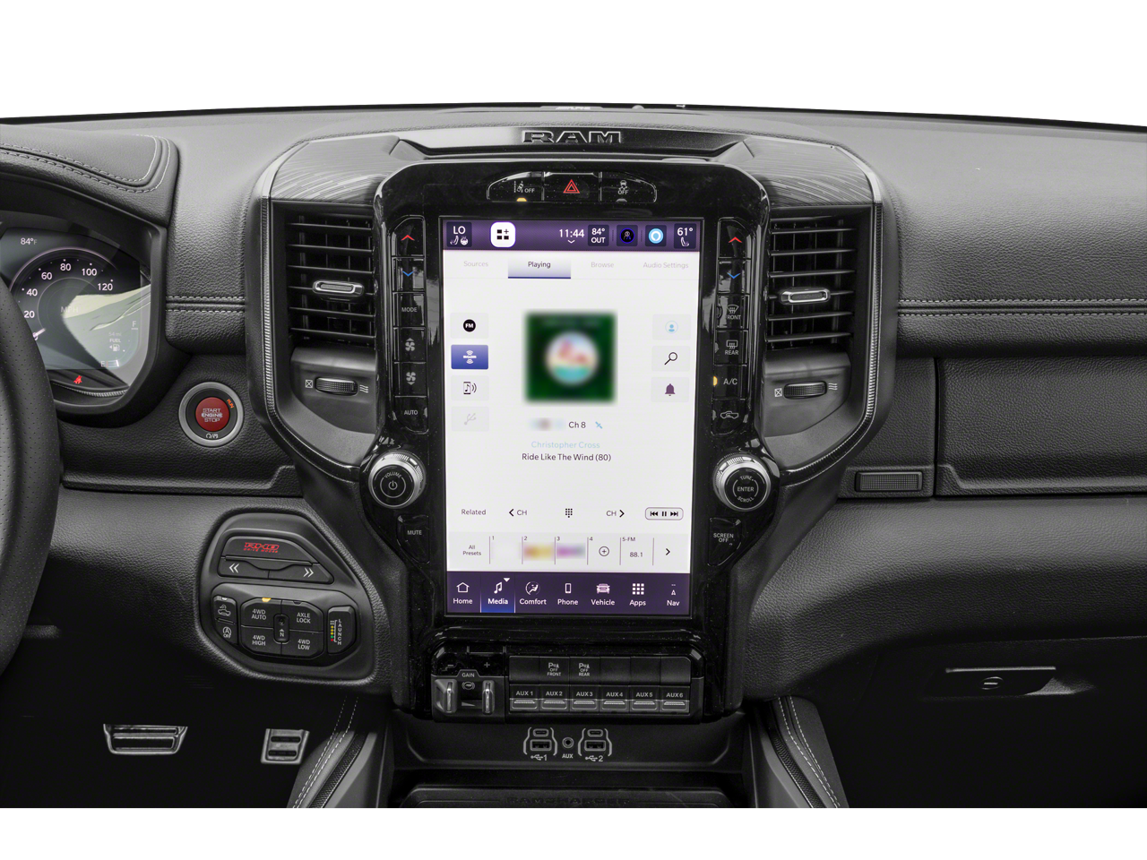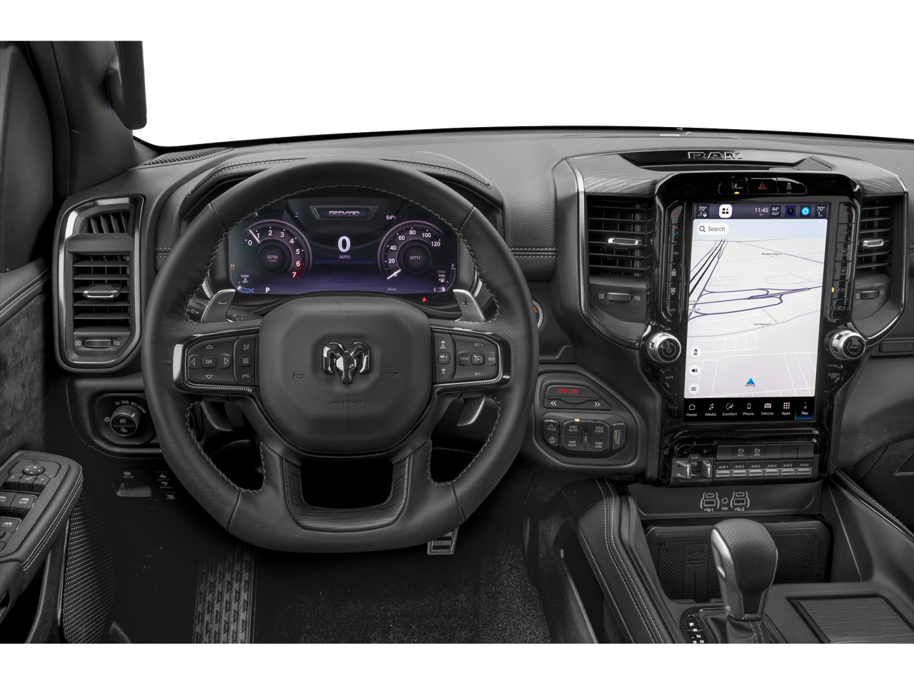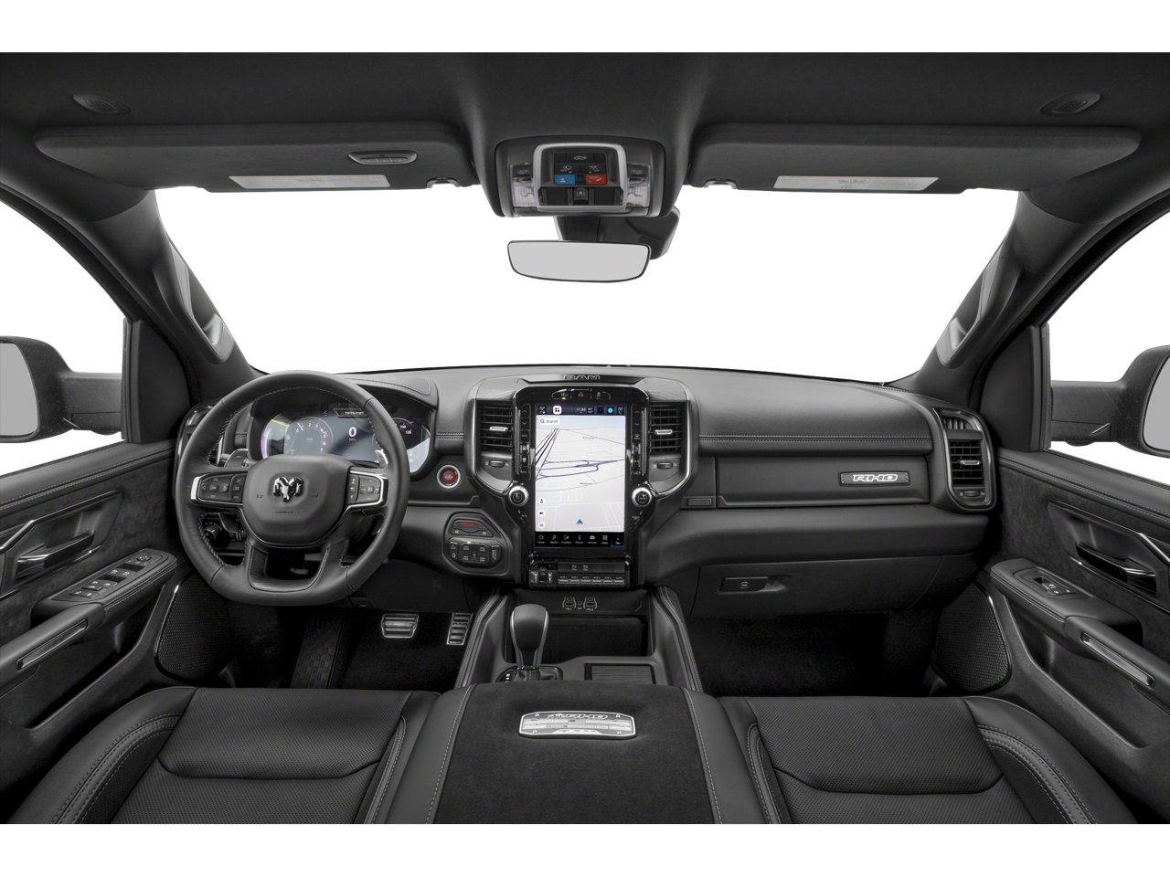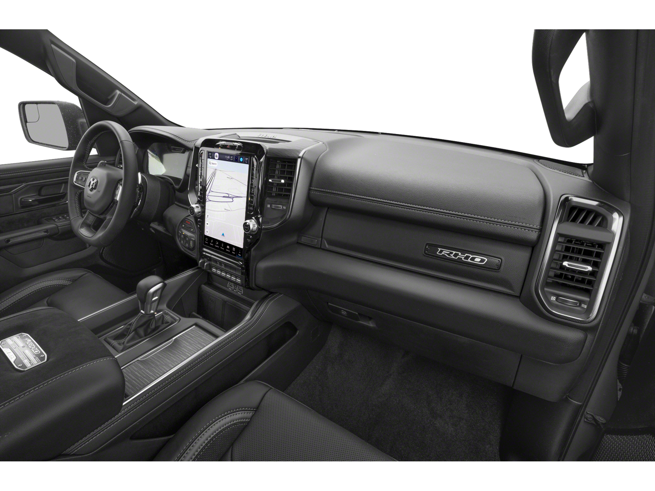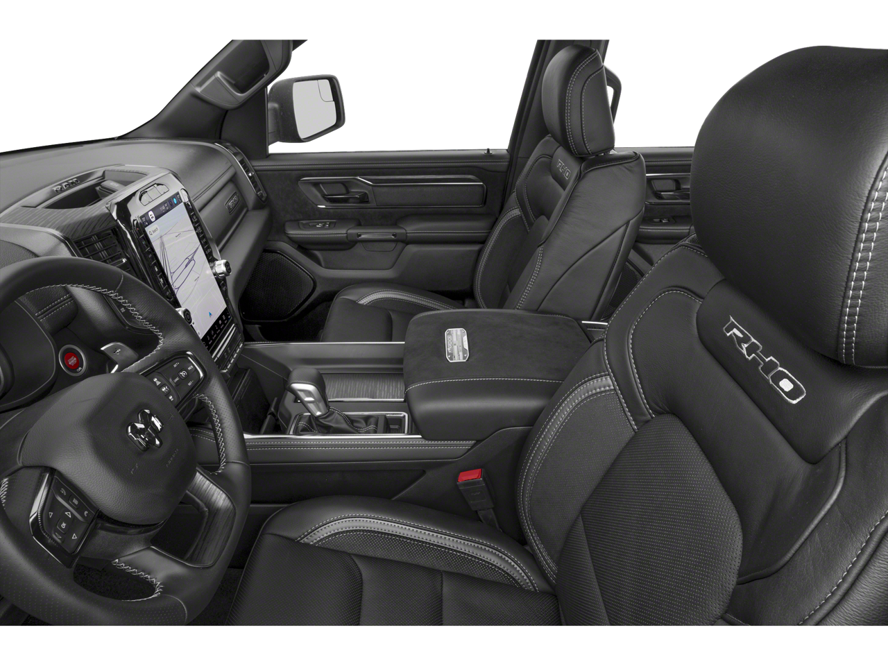 Bed Utility Group (MOPAR Deployable Bed Step, Exterior 115V AC Outlet, and MOPAR 4 Adjustable Cargo Tie-Down Hooks), RHO Level 1 Equipment Group (Driver Power Seat Back Massage, Drowsy Driver Detection, Front Passenger Power Seat Back Massage, GPS Navigation, Power Adjustable Pedals with Memory, Power Tailgate, Radio: Uconnect 5 Nav with 14.4 Display, Radio/Driver Seat/Mirrors/Pedals Memory, Rain Sensitive Windshield Wipers, 12-Way/1-Way Trailer Connector, 14.4 Touchscreen Display, 240 Amp Alternator, 4G LTE Wi-Fi Hot Spot, Connected Travel and Traffic Services, Connectivity - US/Canada, Disassociated Touchscreen Display, Driver Seat Memory, Driver/Passenger Wrapped Assist Handles, Dual Wireless Charging Pad, Evasive Steer Assist, Exterior Mirrors with Memory, Front Passenger Interactive Display, Full Length Premium Upgraded Floor Console, Hands-Free Active Driving Assist System, Harman/Kardon 19 Speaker Premium Sound, HD Radio, Heads-Up Display, Heated Second Row Seats, Integrated Center Stack Radio, Integrated Voice Command with Bluetooth®, Intersection Collision Assist System, Leather/Carbon Flat-Bottom Steering Wheel, LED CHMSL Lamp, Luxury Front Door Trim Panel, Premium Wrapped Instrument Panel Bezel, Real Carbon Fiber Interior Accents, Rear 60/40 Folding Split Recline Seat, SiriusXM Radio Service, Smartphone as a Key Capable, Surround View Camera System, Traffic Sign Recognition, USB Host Flip, Ventilated Front Seats, and Ventilated Rear Seats), Towing Technology Group (Trailer Hitch Line-Up Assist and Trailer Reverse Guidance), Trailer Tow Group (Trailer Reverse Steering Control and Trailer Tire Pressure Monitoring System), Quick Order Package 22Y RHO, Dual-Pane Panoramic Sunroof, Front dual zone A/C, Heated door mirrors, Heated front seats, Heated steering wheel, Navigation System, Power door mirrors, 10 Speakers, 3.92 Rear Axle Ratio, 4-Wheel Disc Brakes, ABS brakes, Adaptive suspension, Adjustable pedals, Air Conditioning, Alloy wheels, AM/FM radio, Apple CarPlay/Android Auto, Auto High-beam Headlights, Auto Power-Folding Mirrors, Auto-dimming door mirrors, Auto-Dimming Exterior Driver Mirror, Auto-Dimming Exterior Passenger Mirror, Auto-dimming Rear-View mirror, Automatic temperature control, Black Exterior Mirrors, Black Power-Fold Trailer Tow Mirrors, Brake assist, Compass, Delay-off headlights, Dome Dual LED Reading Lamp, Driver door bin, Driver vanity mirror, Dual front impact airbags, Dual front side impact airbags, Electronic Stability Control, Engine Block Heater, Exterior Mirrors Courtesy Lamps, Exterior Mirrors with Heating Element, Exterior Mirrors with Supplemental Signals, Exterior Parking Camera Rear, Flareside Box, Forward and Reverse Utility Lights, Front anti-roll bar, Front Bucket Seats, Front Center Armrest w/Storage, Front fog lights, Front reading lights, Front wheel independent suspension, Fully automatic headlights, Garage door transmitter, Illuminated entry, Leather Shift Knob, Leather steering wheel, Leather Trimmed Bucket Seats, Low tire pressure warning, Mirror Clearance/Running Lights, Occupant sensing airbag, Outside temperature display, Overhead airbag, Overhead console, Panic ala
