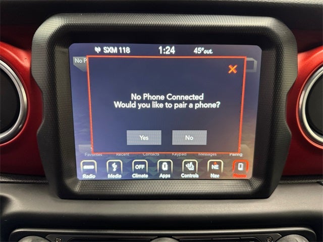 Cold Weather Group (Heated Front Seats and Heated Steering Wheel), Electronic Infotainment System Group (1-Year SiriusXM Guardian Trial, 5-Year SiriusXM Traffic Service, 5-Year SiriusXM Travel Link Service, 8.4 Touchscreen Display, Alpine Premium Audio System, Auto-Dimming Rear-View Mirror, GPS Navigation, HD Radio, Radio: Uconnect 4C Nav w/8.4 Display, Roadside Assistance & 9-1-1 Call, SiriusXM Traffic Plus, and SiriusXM Travel Link), LED Lighting Group (Daytime Running Lamps LED Accents, Front LED Fog Lamps, LED Reflector Headlamps, and LED Taillamps), Quick Order Package 24R, Trailer Tow & HD Electrical Group (240 Amp Alternator, 7 & 4 Pin Wiring Harness, 700 Amp Maintenance Free Battery, Auxiliary Switches, and Class II Receiver Hitch), 4-Wheel Disc Brakes, 4.10 Rear Axle Ratio, 8 Speakers, ABS brakes, Air Conditioning, Alloy wheels, AM/FM radio: SiriusXM, Apple CarPlay/Android Auto, Automatic temperature control, Black 3-Piece Hard Top, Brake assist, Compass, Delay-off headlights, Driver door bin, Driver vanity mirror, Dual front impact airbags, Dual front side impact airbags, Electronic Stability Control, Freedom Panel Storage Bag, Front anti-roll bar, Front Bucket Seats, Front Center Armrest w/Storage, Front dual zone A/C, Front fog lights, Front reading lights, Fully automatic headlights, Garage door transmitter, Heated door mirrors, Illuminated entry, Integrated roll-over protection, Leather steering wheel, Low tire pressure warning, Manufacturer's Statement of Origin (DISC), Non-Lock Fuel Cap w/o Discriminator, Occupant sensing airbag, Outside temperature display, Panic alarm, ParkView Rear Back-Up Camera, Passenger door bin, Passenger vanity mirror, Performance Suspension, Power door mirrors, Power steering, Power windows, Premium Cloth Low-Back Bucket Seats, Radio data system, Radio: Uconnect 4 w/7 Display, Rear anti-roll bar, Rear reading lights, Rear Window Defroster, Rear Window Wiper/Washer, Remote keyless entry, Remote Start System, Security system, Speed control, Split folding rear seat, Steering wheel mounted audio controls, Tachometer, Telescoping steering wheel, Tilt steering wheel, Traction control, Trip computer, Variably intermittent wipers, Voltmeter, and Wheels: 17 x 7.5 Polished w/Black Pockets.