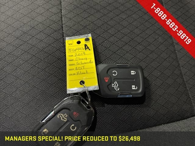 Black 2019 Chevrolet Silverado 1500 EcoTec3 5.3L V8, 8-Speed Automatic, 10-Way Power Driver Seat w/Lumbar, Cloth Rear Seat w/Storage Package, Convenience Package, Dual-Zone Automatic Climate Control, Heated Driver & Front Passenger Seats, Heated Steering Wheel, Hitch Guidance, Trailering Package, Wheels: 20 x 9 Painted Aluminum.