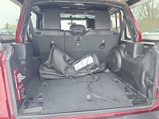 8.4 Radio & Premium Audio Group (1-Year SiriusXM Guardian Trial, 4G LTE Wi-Fi Hot Spot, 5-Year SiriusXM Traffic Service, 5-Year SiriusXM Travel Link Service, 8.4 Touchscreen Display, Alpine Premium Audio System, Auto-Dimming Rear-View Mirror, Emergency/Assistance Call, For Details, Visit DriveUconnect.com, GPS Navigation, HD Radio, Radio: Uconnect 4C Nav w/8.4 Display, SiriusXM Traffic Plus, and SiriusXM Travel Link), Altitude Package, Cold Weather Group (Heated Front Seats and Heated Steering Wheel), LED Lighting Group (Daytime Running Lamps LED Accents, Front LED Fog Lamps, LED Premium Reflector Headlamps, and LED Taillamps), Quick Order Package 22L Altitude (Black Interior Accents, Black Trail Rated Badge, Body Color 3-Piece Hard Top, Body Color Grille w/Gloss Black Rings, Leather Trimmed Bucket Seats, Leather Wrapped Park Brake Handle, Leather Wrapped Shift Knob, Matte Black Jeep Badge, Mold In Color Bumper w/Gloss Black, MOPAR Hardtop Headliner, Wheels: 18 x 7.5 Gloss Black Aluminum, and Wizard Black Instrument Panel Bezels), Safety Group (Blind Spot & Cross Path Detection and ParkSense Rear Park Assist System), 3.45 Rear Axle Ratio, 4-Wheel Disc Brakes, 8 Speakers, ABS brakes, Air Conditioning, Alloy wheels, AM/FM radio: SiriusXM, Anti-Spin Differential Rear Axle, Apple CarPlay, Apple CarPlay/Android Auto, Automatic temperature control, Aux Battery, Brake assist, Cloth Low-Back Bucket Seats, Compass, Delay-off headlights, Driver door bin, Driver vanity mirror, Dual front impact airbags, Dual front side impact airbags, Electronic Stability Control, Front anti-roll bar, Front Bucket Seats, Front Center Armrest w/Storage, Front dual zone A/C, Front fog lights, Front reading lights, Fully automatic headlights, Garage door transmitter, Glass Window Material, Google Android Auto, GPS Antenna Input, Heated door mirrors, Heavy Duty Suspension w/Gas Shocks, Illuminated entry, Integrated roll-over protection, Integrated Voice Command w/Bluetooth®, Leather steering wheel, Low tire pressure warning, Non-Lock Fuel Cap w/o Discriminator, Occupant sensing airbag, Outside temperature display, Panic alarm, ParkView Rear Back-Up Camera, Passenger door bin, Passenger vanity mirror, Power door mirrors, Power steering, Power windows, Radio data system, Radio: Uconnect 4 w/7 Display, Rear anti-roll bar, Rear reading lights, Remote keyless entry, Remote Proximity Keyless Entry, Remote Start System, Security system, Speed control, Split folding rear seat, Steering wheel mounted audio controls, Stop-Start Dual Battery System, Tachometer, Telescoping steering wheel, Tilt steering wheel, Traction control, Trip computer, Variably intermittent wipers, Voltmeter, and Wheels: 18 x 7.5 Polished w/Gray SpokeS.