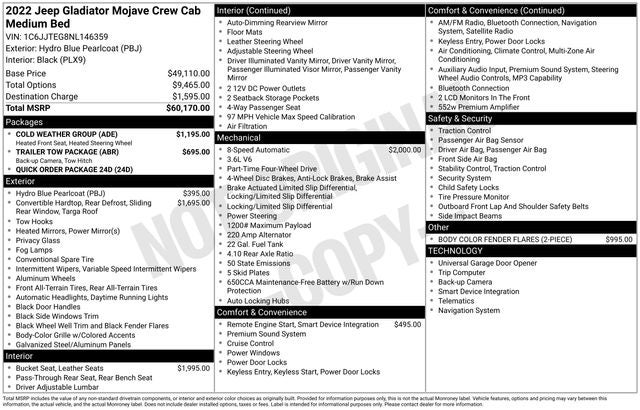 2022 Jeep Gladiator Mojave 3.6 Liter V6 Crew Cab Automatic 4WD