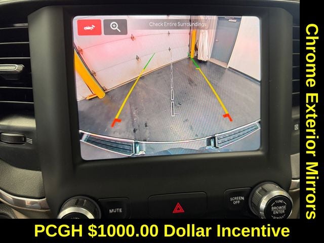 Quick Order Package 27H Laramie, 10 Speakers, 3.21 Rear Axle Ratio, 8.4 Touchscreen Display, Adjustable pedals, Apple CarPlay/Android Auto, Audio memory, Automatic temperature control, Bumpers: chrome, Chrome Exterior Mirrors, Connectivity - US/Canada, Driver Seat Memory, Exterior Mirrors Courtesy Lamps, Exterior Mirrors w/Supplemental Signals, Fully automatic headlights, Garage door transmitter, Global Telematics Box Module (TBM), GPS Antenna Input, Heated Front Seats, Heated front seats, Heated Steering Wheel, Heated steering wheel, Memory seat, ParkView Rear Back-Up Camera, Pedal memory, Power 8-Way Driver & Passenger Seats, Power door mirrors, Power driver seat, Power-Folding Mirrors, Radio: Uconnect 5 W w/8.4 Display, Rear step bumper, Turn signal indicator mirrors, Ventilated Front Seats, Wheels: 20 x 9 Premium Paint/Polished, #1 Seat Foam Cushion, 2nd Row In Floor Storage Bins, 3 Rear Seat Head Restraints, 4 Way Front Headrests, 4-Wheel Disc Brakes, 48V Belt Starter Generator, ABS brakes, Air Conditioning, AM/FM radio: SiriusXM, Apple CarPlay, Auto-dimming door mirrors, Auto-Dimming Exterior Driver Mirror, Auto-dimming Rear-View mirror, Brake assist, Compass, Convex Wide-Angle Mirror Insert, Delay-off headlights, Driver door bin, Driver vanity mirror, Dual front impact airbags, Dual front side impact airbags, Electronic Stability Control, Exterior Mirrors w/Heating Element, Exterior Mirrors w/Memory, For Details, Visit DriveUconnect.com, Front anti-roll bar, Front Center Armrest w/Storage, Front dual zone A/C, Front fog lights, Front reading lights, Front Seat Back Map Pockets, Front wheel independent suspension, Google Android Auto, Heated door mirrors, Illuminated entry, Integrated Center Stack Radio, Leather steering wheel, Leather Trim 40/20/40 Bench Seat, Low tire pressure warning, Manufacturer's Statement of Origin, Occupant sensing airbag, Outside temperature display, Overhead airbag, Overhead console, Panic alarm, Passenger door bin, Passenger vanity mirror, Power 2-Way Driver Lumbar Adjust, Power 2-Way Passenger Lumbar Adjust, Power passenger seat, Power steering, Power windows, Rear 60/40 Folding Seat, Rear anti-roll bar, Rear seat center armrest, Rear window defroster, Remote keyless entry, Security system, Speed control, Split folding rear seat, Steering wheel mounted audio controls, Tachometer, Telescoping steering wheel, Tilt steering wheel, Traction control, Trip computer, Variably intermittent wipers, Ventilated front seats, and VoltmeteR.