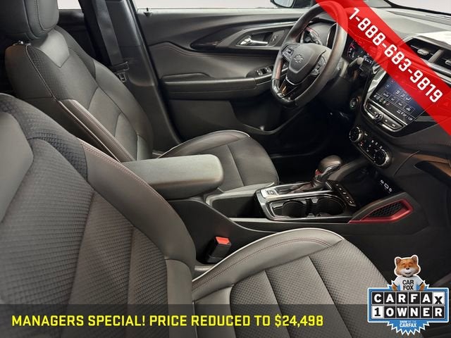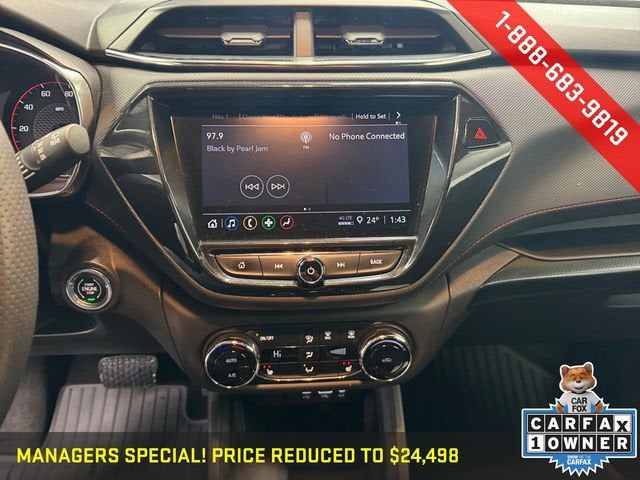 Black 2023 Chevrolet TrailBlazer 1.3L Ecotec Turbo DOHC SIDI w/VVT, 9-Speed Automatic, 8 Diagonal Color Touchscreen Display, Confidence II Package, Convenience Package, Dual-Pane Panoramic Power Sunroof, Hands-Free Power Programmable Liftgate, Heated front seats, Heated Steering Wheel, Preferred Equipment Group 1RS, Rear Park Assist, Sun & Liftgate Package. ONE OWNER AND NO ACCIDENTS.