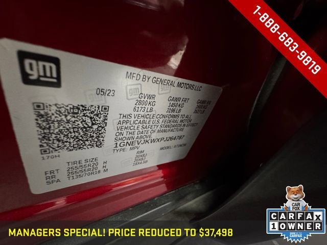 Radient Red 2023 Chevrolet Traverse 3.6L V6 SIDI VVT, 9-Speed Automatic, Dual SkyScape 2-Panel Power Sunroof, Heated and cooled leather seats, Navigation System, Power Liftgate. ONE OWNER.