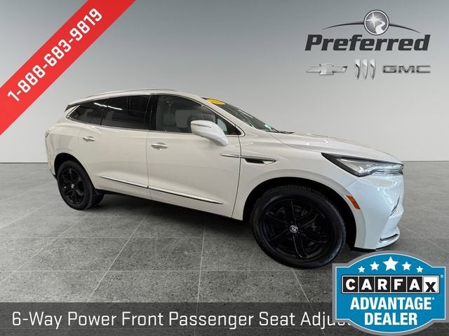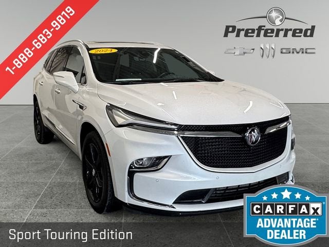 White Frost 2024 Buick Enclave 3.6L V6 SIDI VVT, 9-Speed Automatic, 5,000 lbs Trailering Package, 6-Way Power Front Passenger Seat Adjuster, 7-Passenger Seating, 8-Way Power Driver Seat Adjuster, Adaptive Cruise Control, Bose Performance-Enhanced 10-Speaker System, Enhanced Automatic Emergency Braking, Front Power Sliding Moonroof, Heated and cooled leather seats, Heavy-Duty Cooling System, Hitch Guidance w/Hitch View, Inside Rearview Mirror w/Full Camera Display, Power Liftgate, Radio: Buick Infotainment Sys AM/FM Stereo w/Nav, Sound & Sites Package, Sport Touring Edition, Technology Package, Wheels: 20 Gloss Black. ONE OWNER AND NO ACCIDENTS.