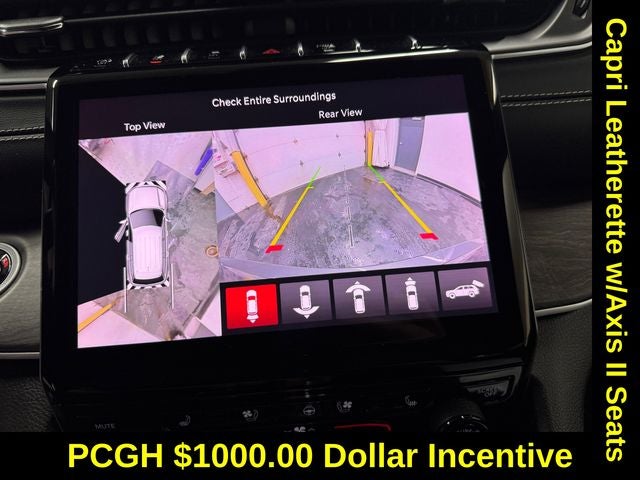 Black Appearance Package (Gloss Black Exterior Accents and Wheels: 20 x 8.5 Gloss Black Painted Aluminum), Luxury Tech Group II (2nd-Row Manual Window Shades, Auto-Dimming Exterior Driver Mirror, Capri Leatherette w/Axis II Seats, Front/Rear Doors & Liftgate w/Passive Entry, Integrated Off-Road Camera, Intersection Collision Assist System, Memory Steering Column, ParkSense Front/Rear Park Assist w/Stop, Power Tilt/Telescope Steering Column, Rain Sensitive Windshield Wipers, Rear Back-Up Camera Washer, Rearview Autodim Digital Display Mirror, Surround View Camera System, Ventilated Front Seats, and Wireless Charging Pad), Quick Order Package 23E, 4WD, Auto High-beam Headlights, Dual-Pane Panoramic Sunroof, Memory seat, Navigation System, ParkView Rear Back-Up Camera, Radio: Uconnect 5 Nav w/10.1 Display, 3.45 Rear Axle Ratio, 4-Wheel Disc Brakes, 6 Speakers, ABS brakes, Active Noise Control System, Air Conditioning, Alloy wheels, AM/FM radio: SiriusXM with 360L, Anti-whiplash front head restraints, Audio memory, Automatic temperature control, Brake assist, Bumpers: body-color, Capri Leatherette Seats, Compass, Delay-off headlights, Driver door bin, Driver vanity mirror, Dual front impact airbags, Dual front side impact airbags, Electronic Stability Control, Emergency communication system, Four wheel independent suspension, Front anti-roll bar, Front Bucket Seats, Front Center Armrest w/Storage, Front dual zone A/C, Front fog lights, Front reading lights, Fully automatic headlights, Garage door transmitter, Heated door mirrors, Heated front seats, Heated rear seats, Heated steering wheel, Illuminated entry, Knee airbag, Low tire pressure warning, MOPAR Black Side Steps, Normal Duty Suspension, Occupant sensing airbag, Outside temperature display, Overhead airbag, Overhead console, Panic alarm, Passenger door bin, Passenger vanity mirror, Power door mirrors, Power driver seat, Power Liftgate, Power passenger seat, Power steering, Power windows, Radio data system, Rear anti-roll bar, Rear reading lights, Rear window defroster, Rear window wiper, Remote keyless entry, Security system, Speed control, Speed-Sensitive Wipers, Split folding rear seat, Spoiler, Steering wheel mounted audio controls, Tachometer, Telescoping steering wheel, Tilt steering wheel, Traction control, Trip computer, Turn signal indicator mirrors, Variably intermittent wipers, and Voltmeter.