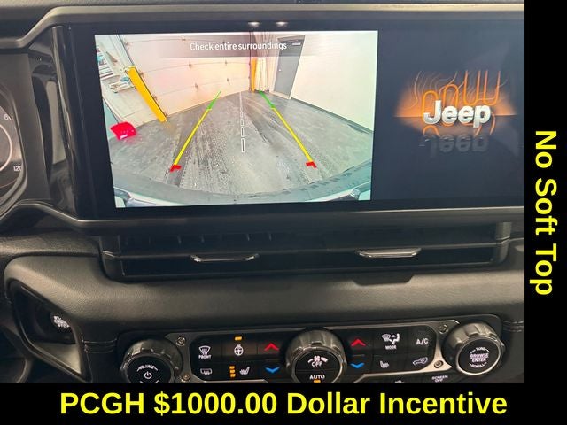 Convenience Group (Heated Front Seats, Heated Steering Wheel, and Remote Start System), Safety Group (Auto High Beam Headlamp Control, Blind Spot & Cross Path Detection, and ParkSense Rear Park Assist System), Quick Order Package 24R Rubicon, Earl Clearcoat, 12.3 Touchscreen Display, 4.10 Rear Axle Ratio, 7 & 4 Pin Wiring Harness, Apple CarPlay/Android Auto, Black 3-Piece Hard Top, Freedom Panel Storage Bag, No Soft Top, Performance Suspension, Radio: Uconnect 5 w/12.3 Display, Rear Window Defroster, Rear Window Wiper/Washer, Wheels: 17 x 7.5 Machined/Painted Black, 4-Wheel Disc Brakes, 8 Speakers, 97 MPH Vehicle Max Speed Calibration, ABS brakes, Air Conditioning, Alloy wheels, AM/FM radio: SiriusXM, Apple CarPlay, Automatic temperature control, Aux Battery, Brake assist, Cloth Low-Back Bucket Seats, Compass, Connectivity - US/Canada, Delay-off headlights, Disassociated Touchscreen Display, Driver door bin, Driver vanity mirror, Dual front impact airbags, Dual front side impact airbags, Electronic Stability Control, Emergency communication system: Jeep Connect, Front anti-roll bar, Front Bucket Seats, Front Center Armrest w/Storage, Front dual zone A/C, Front fog lights, Front reading lights, Fully automatic headlights, Google Android Auto, Heated door mirrors, Illuminated entry, Integrated Center Stack Radio, Integrated roll-over protection, Integrated Voice Command w/Bluetooth®, Low tire pressure warning, MOPAR All-Weather Floor Mats, Non-Lock Fuel Cap w/o Discriminator, Occupant sensing airbag, Outside temperature display, Overhead airbag, Panic alarm, ParkView Rear Back-Up Camera, Passenger door bin, Passenger vanity mirror, Power door mirrors, Power steering, Power windows, Radio data system, Rear anti-roll bar, Rear reading lights, Remote keyless entry, Security system, Speed control, Split folding rear seat, Steering wheel mounted audio controls, Stop-Start Dual Battery System, Tachometer, Telescoping steering wheel, Tilt steering wheel, Traction control, Trip computer, Variably intermittent wipers, and Voltmeter.