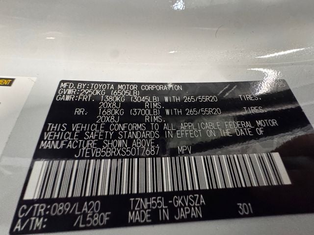 - Rear Tire Size: P265/55SR20