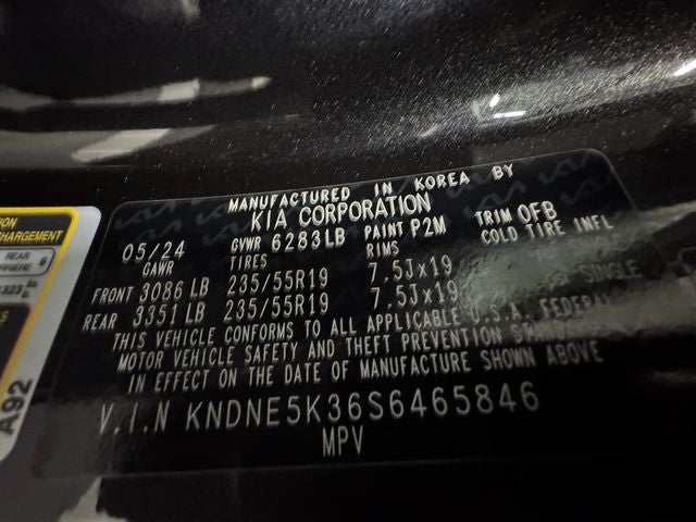 SX Dark Edition Package, Wheels: 7.5J x 19 Alloy Dark Edition. Panthera Metal 2025 Kia Carnival SX FWD 8-Speed Automatic V6