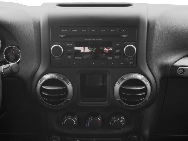 Connectivity Group (Remote USB Port, Tire Pressure Monitoring Display, and Uconnect Voice Command w/Bluetooth®), Power Convenience Group (Auto-Dimming Mirror w/Reading Lamp and Security Alarm), Quick Order Package 24W Willys Wheeler (3.73 Rear Axle Ratio, 4-Wheel Drive Swing Gate Decal, Air Conditioning, Black Jeep Grille Badge, Deep Tint Sunscreen Windows, Wheels: 17 x 7.5 High Gloss Black Willys, and Willys Hood Decal), 16 x 7.0 Luxury Styled Steel Wheels, 3.21 Rear Axle Ratio, 4-Wheel Disc Brakes, 8 Speakers, ABS brakes, AM/FM radio, Audio Jack Input for Mobile Devices, Black 3-Piece Hard Top, Brake assist, CD player, Cloth Seats w/Adjustable Head Restraints, Compass, Driver door bin, Driver vanity mirror, Dual front impact airbags, Electronic Stability Control, Freedom Panel Storage Bag, Front anti-roll bar, Front Bucket Seats, Front Center Armrest w/Storage, Front fog lights, Integrated roll-over protection, Low tire pressure warning, Normal Duty Suspension, Occupant sensing airbag, Outside temperature display, Passenger door bin, Passenger vanity mirror, Power steering, Radio: 130, Rear anti-roll bar, Rear Window Defroster, Speed control, Steering wheel mounted audio controls, Sunrider Soft Top, Tachometer, Tilt steering wheel, Traction control, Trip computer, and Variably intermittent wipers.
